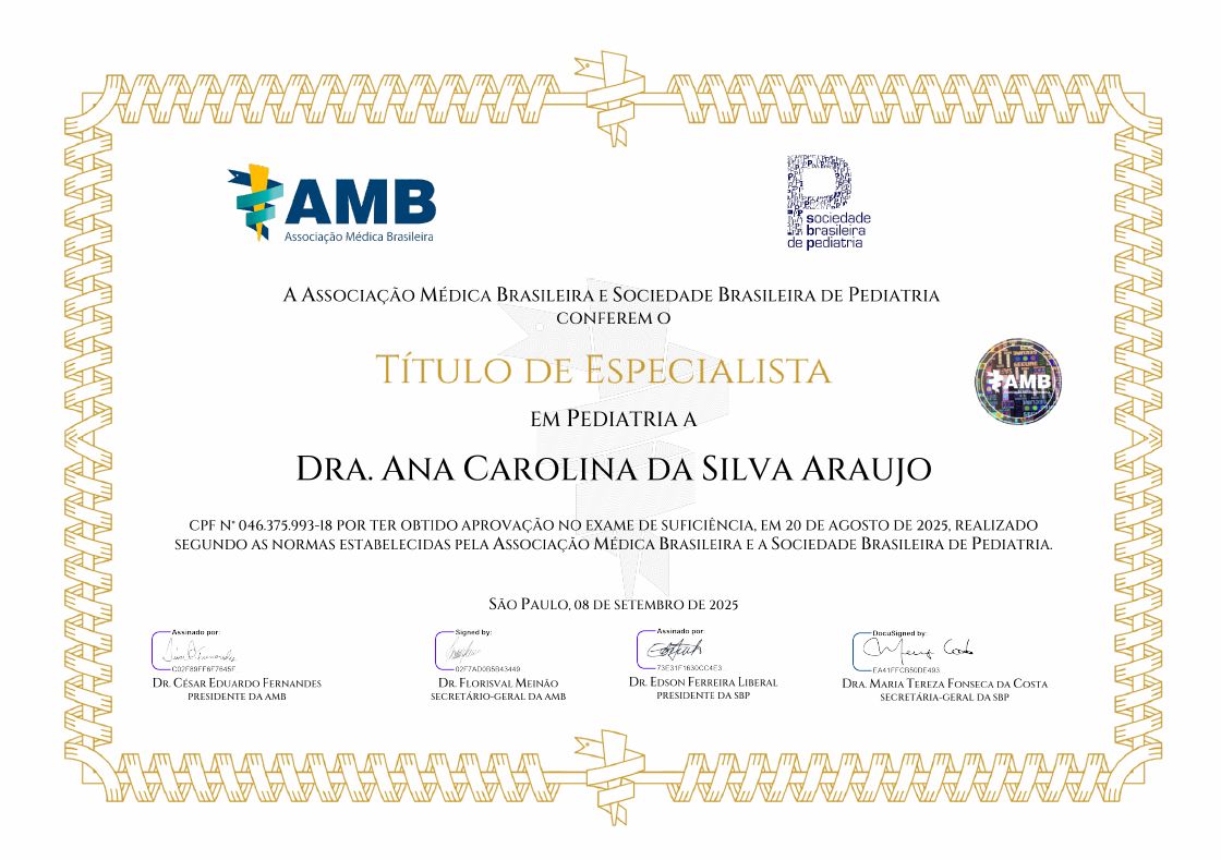 - TITULO DE ESPECIALISTA EM PEDIATRIA- SOCIEDADE BRASILEIRA DE PEDIATRIA-2025