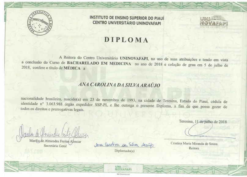 - GRADUAÇÃO EM MEDICINA PELO CENTRO UNIVERSITÁRIO UNINOVAFAPI-2018